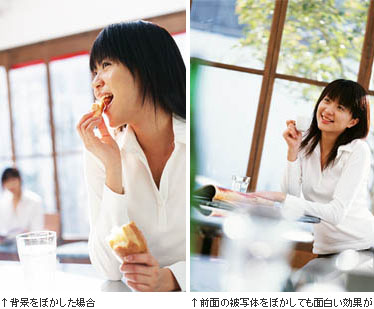 さて、もう一つ人物をきれいに撮るテクニックとして、背景をぼかすという方法があります。背景がきれいにぼけると人物の輪郭がくっきり際だち、グラビアのような写真に。ピントが合う範囲やぼける範囲はカメラからの距離で決まります。人物とぼかしたい背景はなるべく距離がはなれていなければなりません。絞りも重要で、絞り優先モードなどで絞りの数値を小さくすると背景はぼけやすくなります。