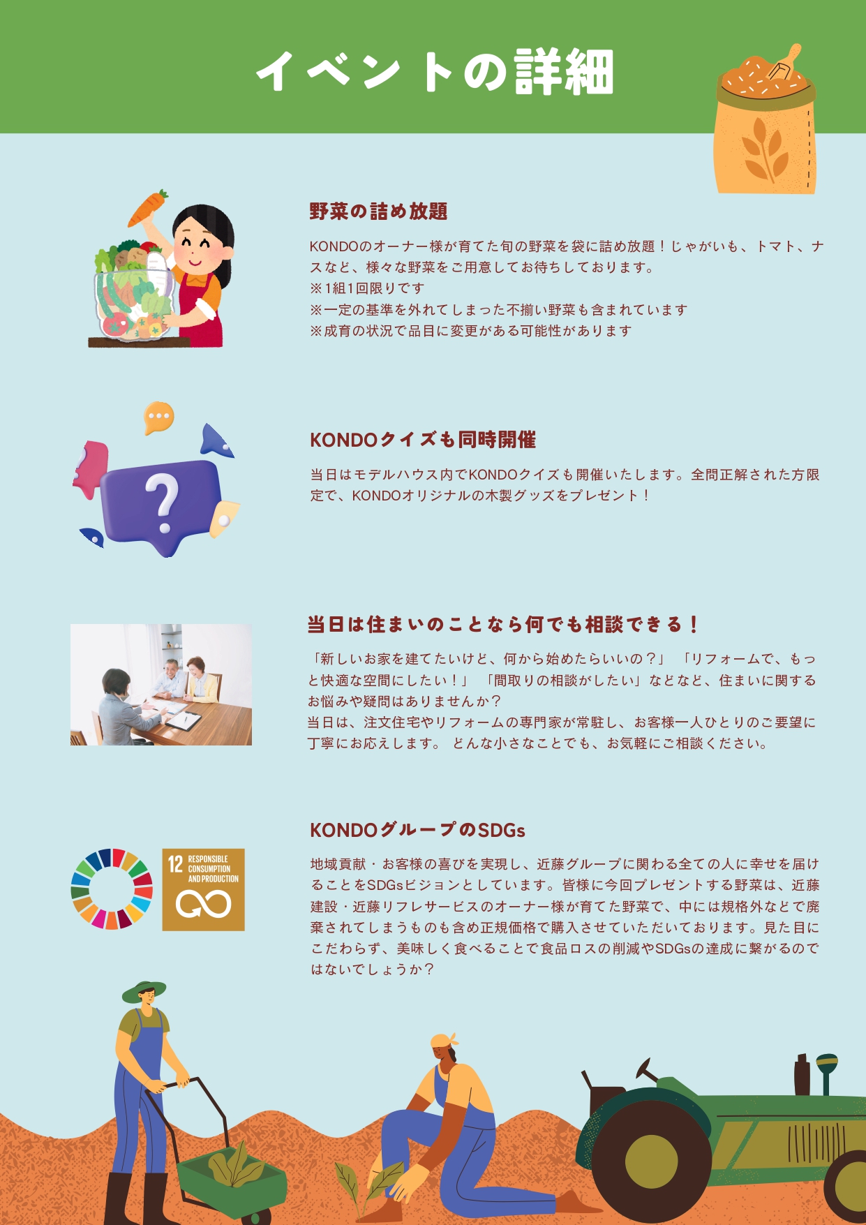 KONDOグループのオーナー様が育てた旬のお野菜の詰め放題ができるイベントです!