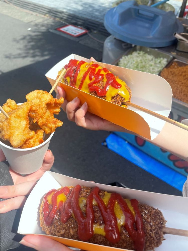 お昼ご飯は、美味しそうな香りに連れられて 先輩と一緒に屋台をウロウロ。