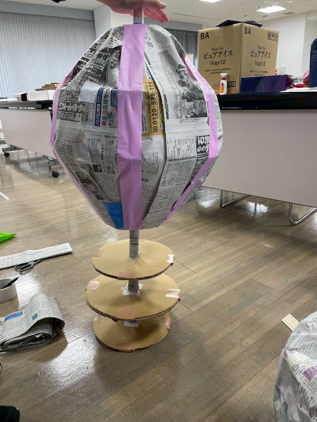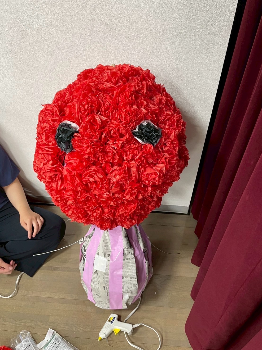 ピクミンは基礎を作り、周りに新聞紙を巻き、お花紙を付けていきました。