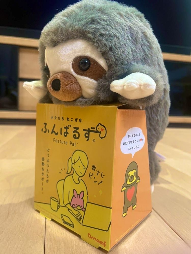 こうして机との間に挟んで、猫背を防いでくれるんですよ~(…まず、かわいい)
