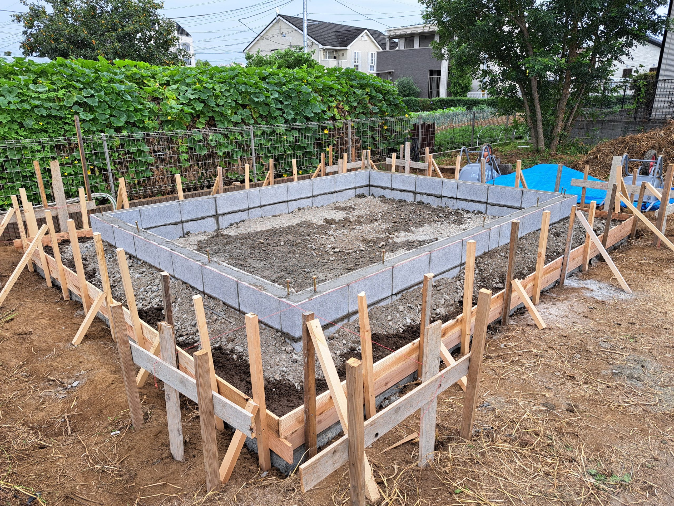 この他にも色々作業を行いまして、基礎ブロック積みが無事完了しました。