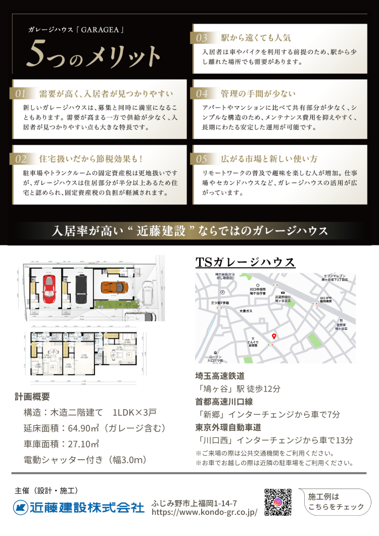 - アクセス:「鳩ケ谷」駅から徒歩12分、首都高速川口線「新郷」ICから車で約7分の好立地