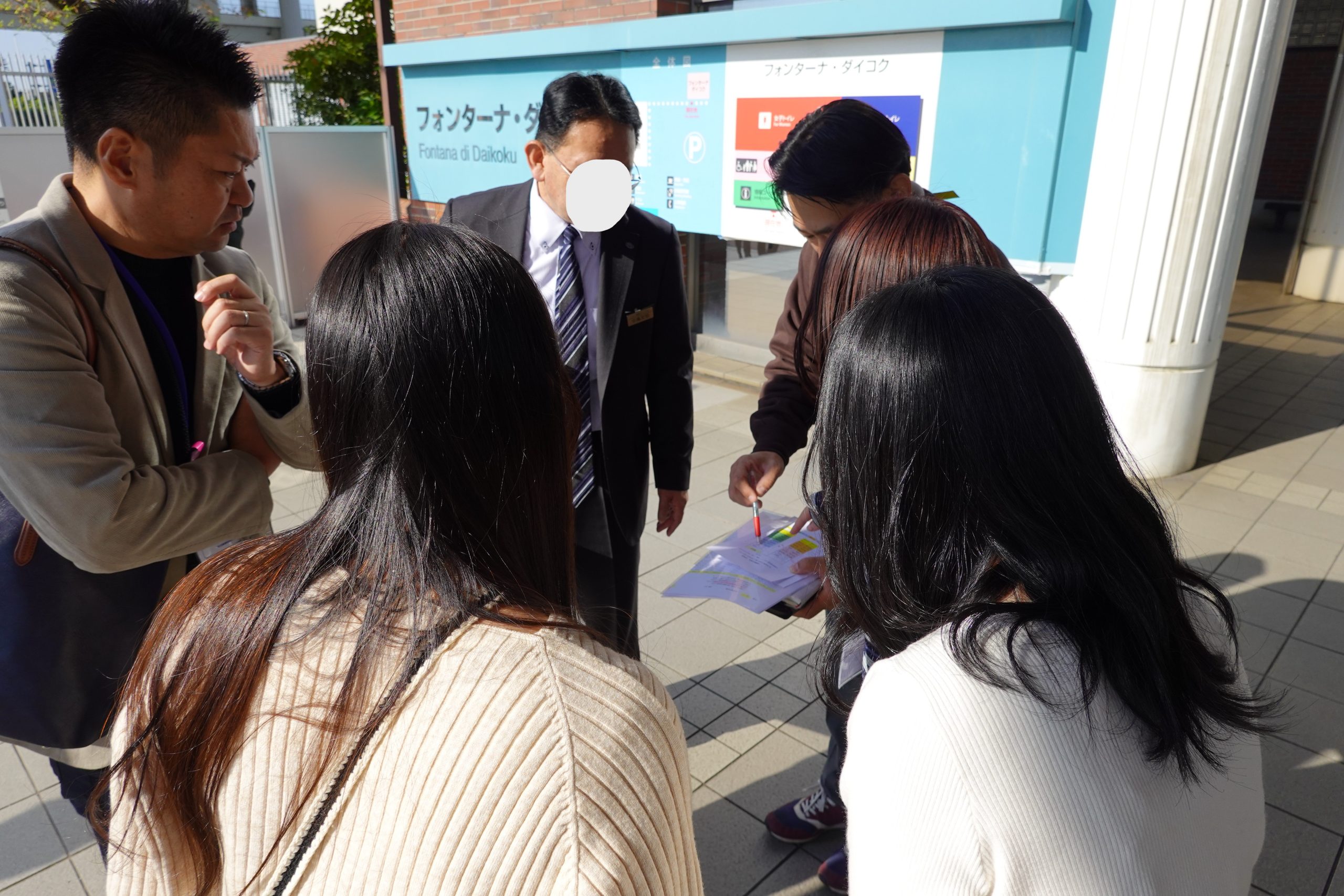 そして、自由散策からお戻りになるお客様のお出迎え。