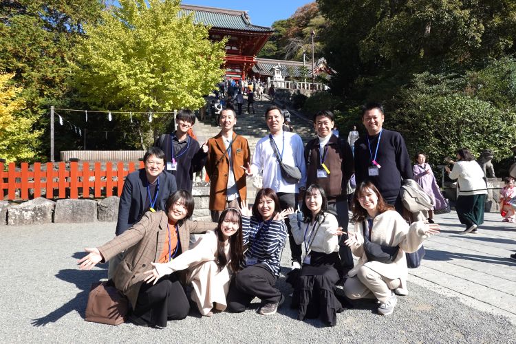 鶴岡八幡宮の前で、記念の集合写真をおとりさせていただきました。