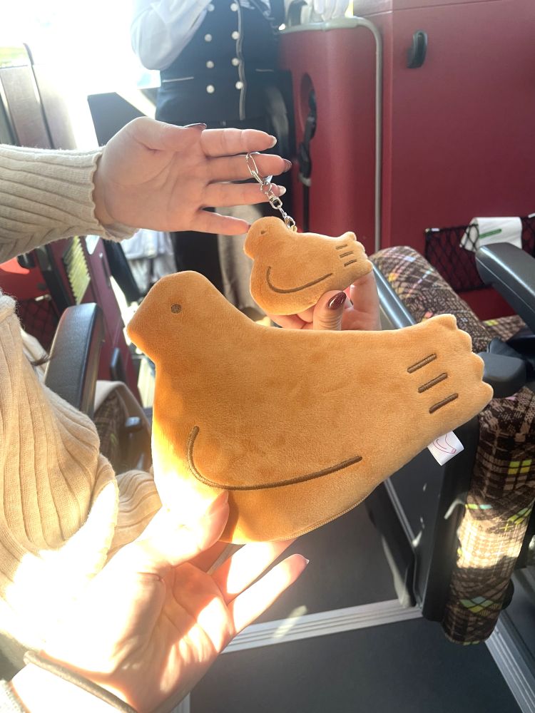 つづきさんは「鳩ホルダー(キュウホルダー)」、もちだは「鳩ぽっぽーち」を購入。(笑)