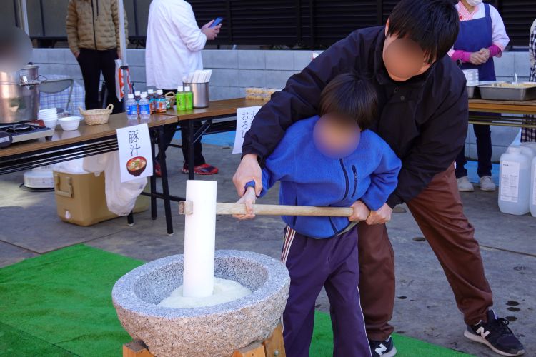 ぺったんぺったんお餅つきの体験を楽しむ