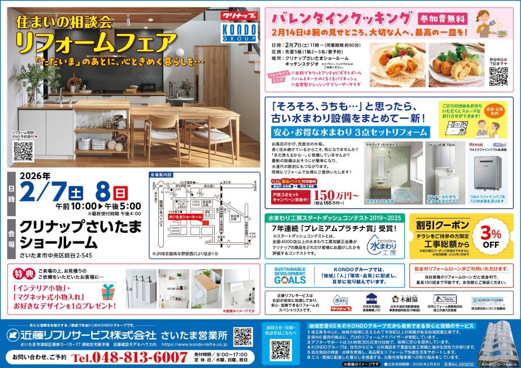 ・ 2月7日(土)8日(日) クリナップさいたまショールーム