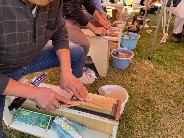 ブースでは、自慢の大工さんによる包丁研ぎと、