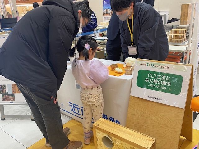 近藤建設でもブースを出展し、秩父檜やCLTといった国産木材の活用、