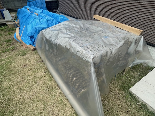 下地に竹を取り付け、土を敷き、芝生を葺く工程に入っていました。