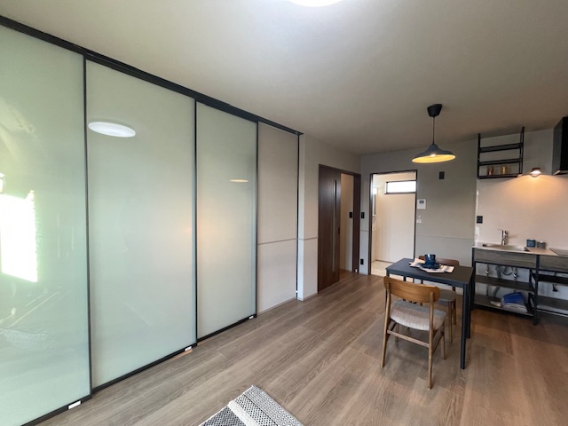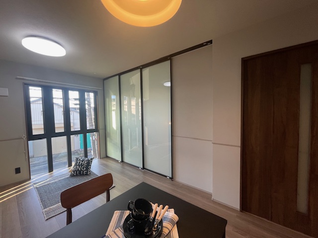 間仕切りを開ければ開放的な空間が広がり、趣味仲間が集まって楽しめる工夫も魅力です。
