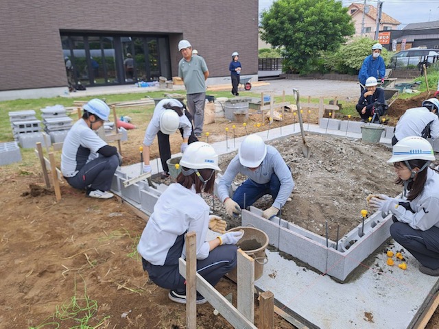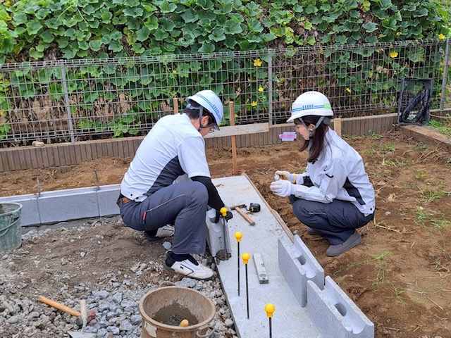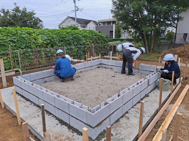 基礎工事のブロック積みが着々と進む様子が写っていました。