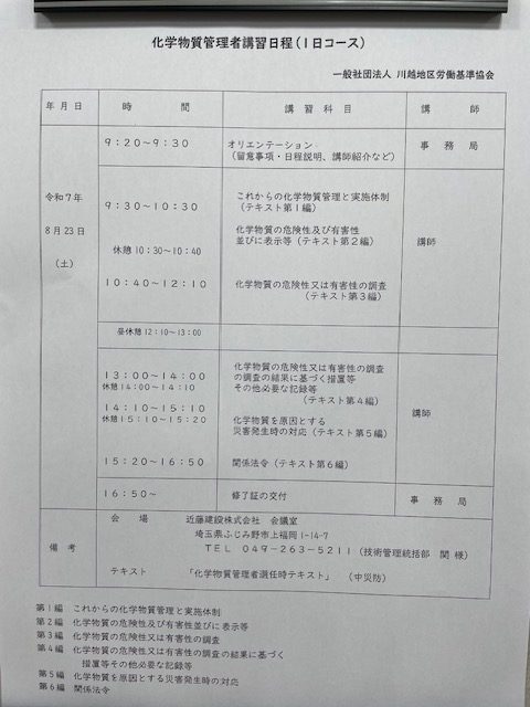 また、本社ホールでは協力会社の皆さまを対象とした「化学物質管理者講習」が行われました。