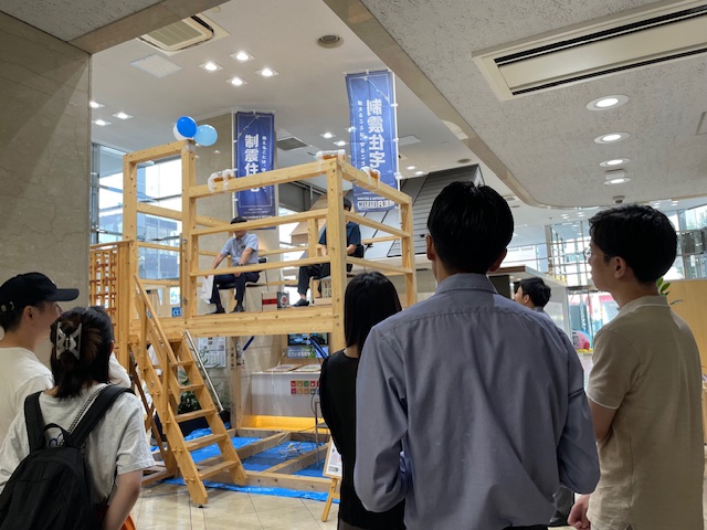 近藤建設の家づくりコンセプトや制震ダンパーの体感、吹付断熱の実演。