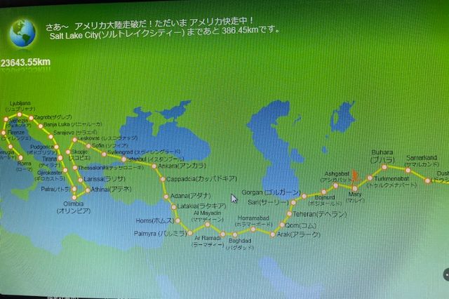 現在はアメリカ大陸を横断中で、ソルトレイクシティーの手前までたどり着いています。