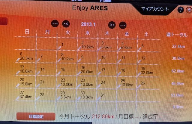 2013年1月2日から記録をつけ始めた早朝ラン。