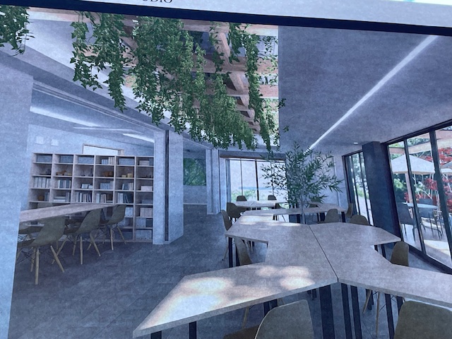 お洒落なカフェ風のデザインで、地域の方々が気軽に立ち寄れる、