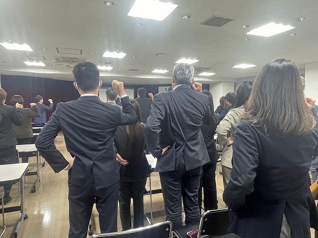 全員の声を合わせたシュプレヒコールで締めくくり。