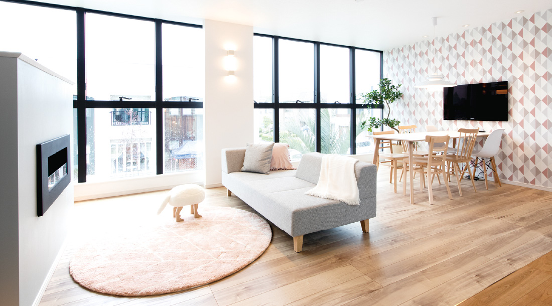 生活を楽しむ北欧デザインには、日照時間が短い北欧で快適に過ごすヒントが詰まっています。暗くなりがちの屋内は、白い壁面をベースに、ポップなアクセントカラーにより明るく見せる工夫や、天然木による「温かみ」が特徴です。KONDOでは、自社のインテリアコーディネーターにより、建物の色彩計画を加え、カーテンや照明・家具も含めて統一感の取れたインテリアをご提案しています。