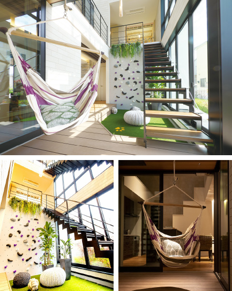 高気密高断熱の住まいでは、屋内での活動が活発になる事で健康になると言われています。更に、ジムになる家では、快適な屋内に設けられたボルダリングウォールなどで一年中インドアスポーツをお楽しみいただけます。