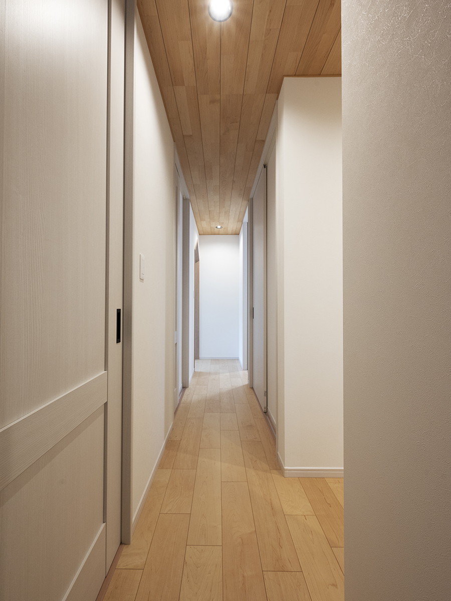 ご家族が気持ちよく過ごせる広いリビング、小上がりの畳コーナー、ランドリールーム、ルーフバルコニーなどたくさんの要望を、近藤建設で実現されたT様。太陽光発電パネルの搭載+「断熱等級6」の家は、暑さや寒さを感じることのない快適さで、もちろん省エネ。カウンターを造作したナチュラルテイストのキッチン、家事負担を大幅に軽減するランドリールーム、便利な回遊動線など、「後悔がまったくない、100点満点の家です」とお喜びです。