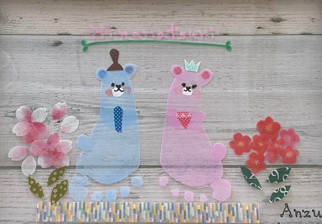お子さまの手や足に水性インクをつけて、アクリル板に「ペタン!」すると、手型や足型が、かわいい動物のひなまつりアートに大変身♪お子さまの“今”を愛らしいパネルにして、ひなまつりに飾りませんか?