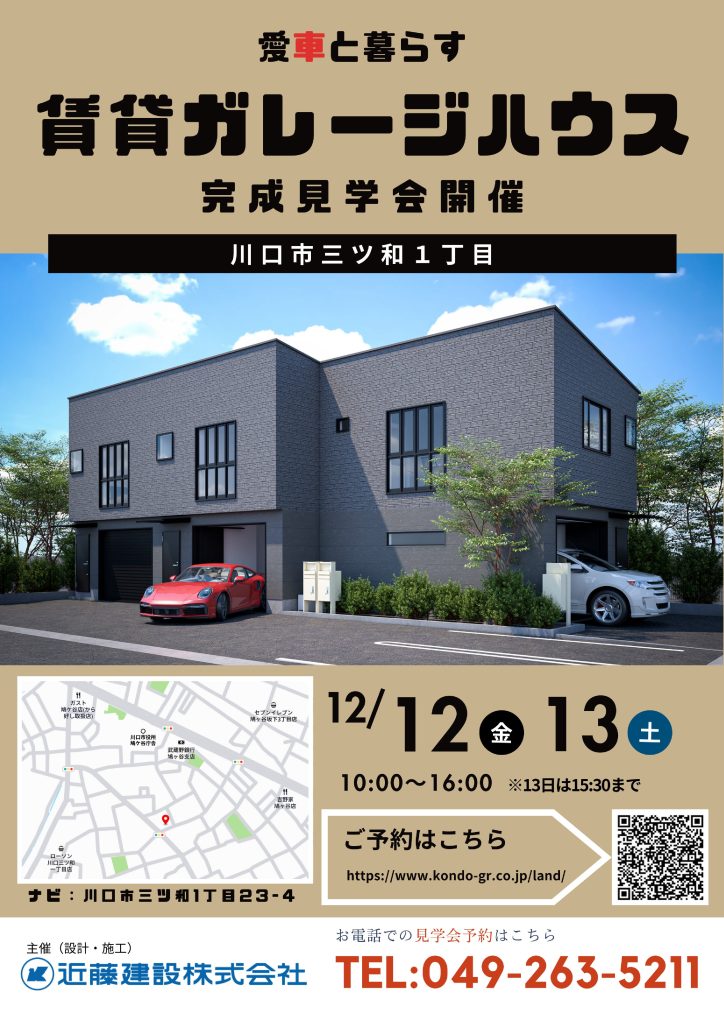 賃貸ガレージハウスの完成現場見学会を開催いたします。