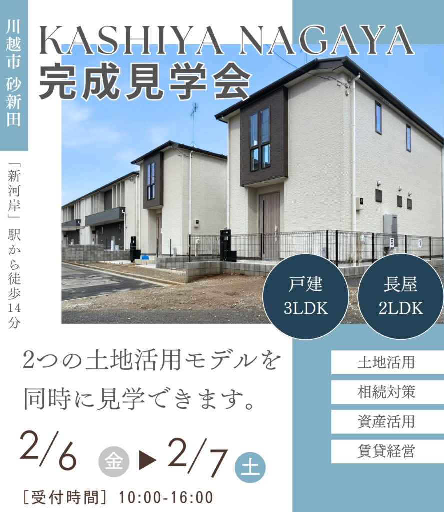 【2/6・7 完成現場見学会】                    戸建&長屋の2モデル同時見学 in 川越市砂新田