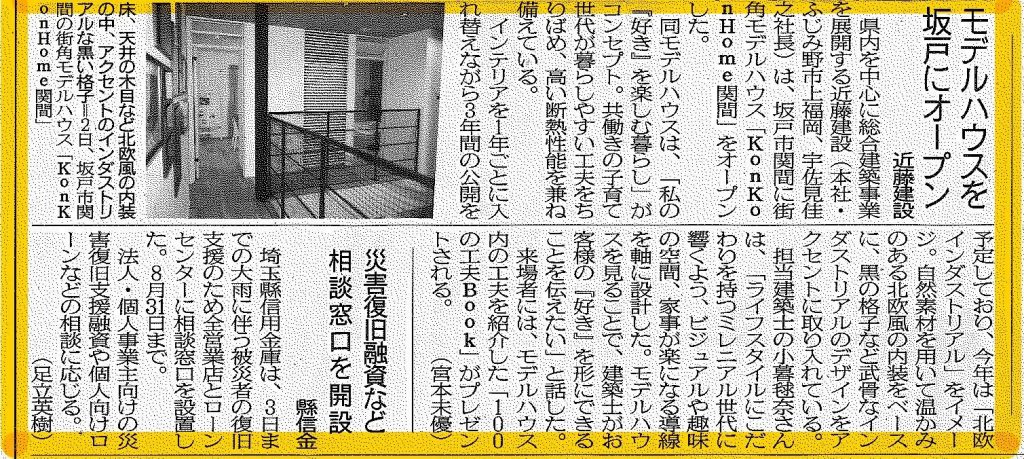 2023年6月14日発行の埼玉新聞に街角モデルハウス「Kon Kon Home 関間」が掲載されました。